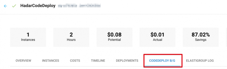Elastigroups with Code deploy integration offers an option to utilize the B/G deployment mechanism. The Elastigroup will provision new instances in the Elastigroup with 'green' tags (user configurable) after the Tags are added to the instances, the user may start the deployment from AWS Code Deploy console. Once completed, Elastigroup will detach the old, 'blue' instances.