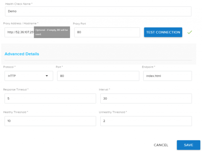 - Interval: The interval (in seconds) between the checks. Minimum of 10.