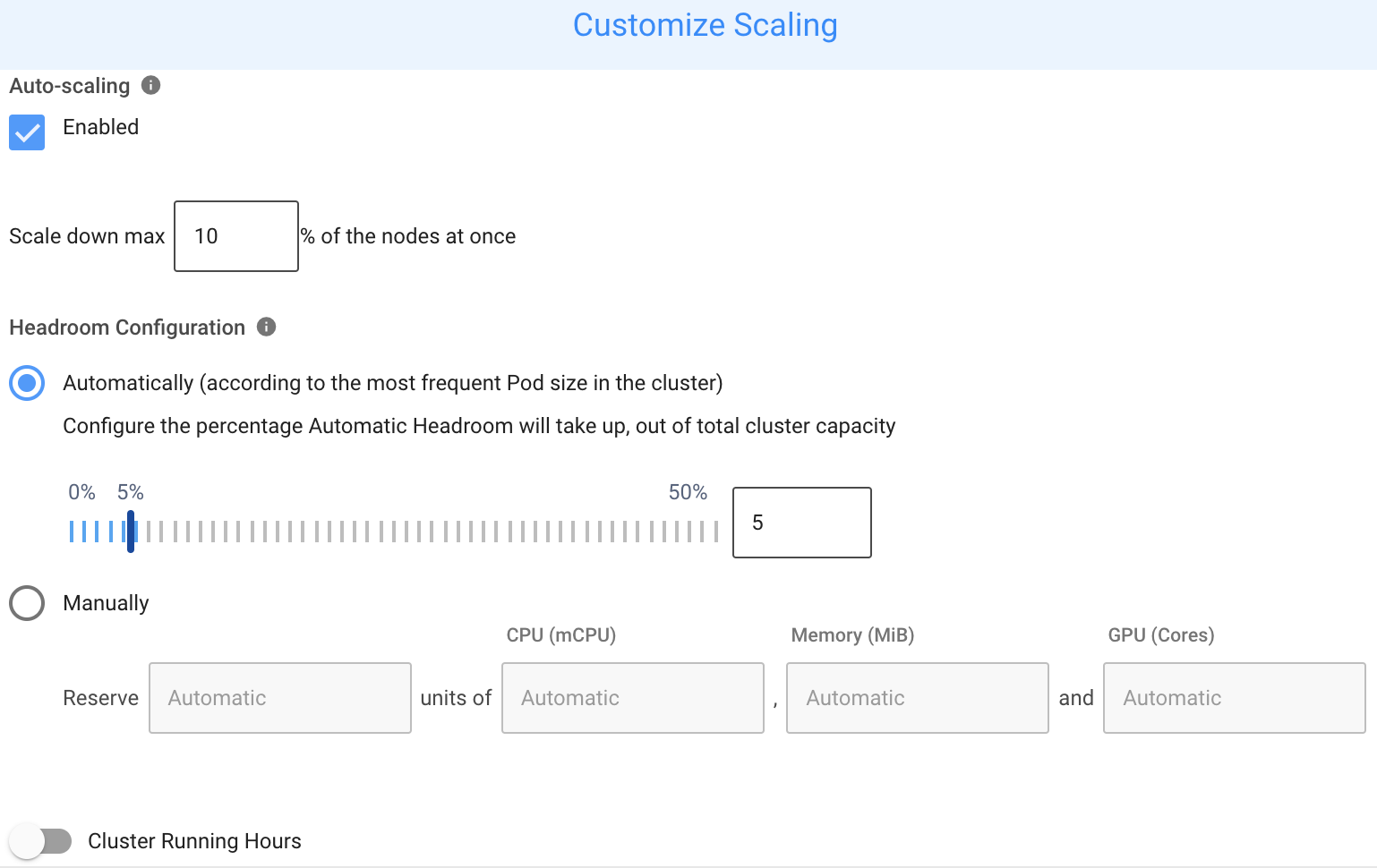 Ocean optimally manages the headroom to provide the best possible cost/performance balance. However, headroom may also be manually configured to support any use case.