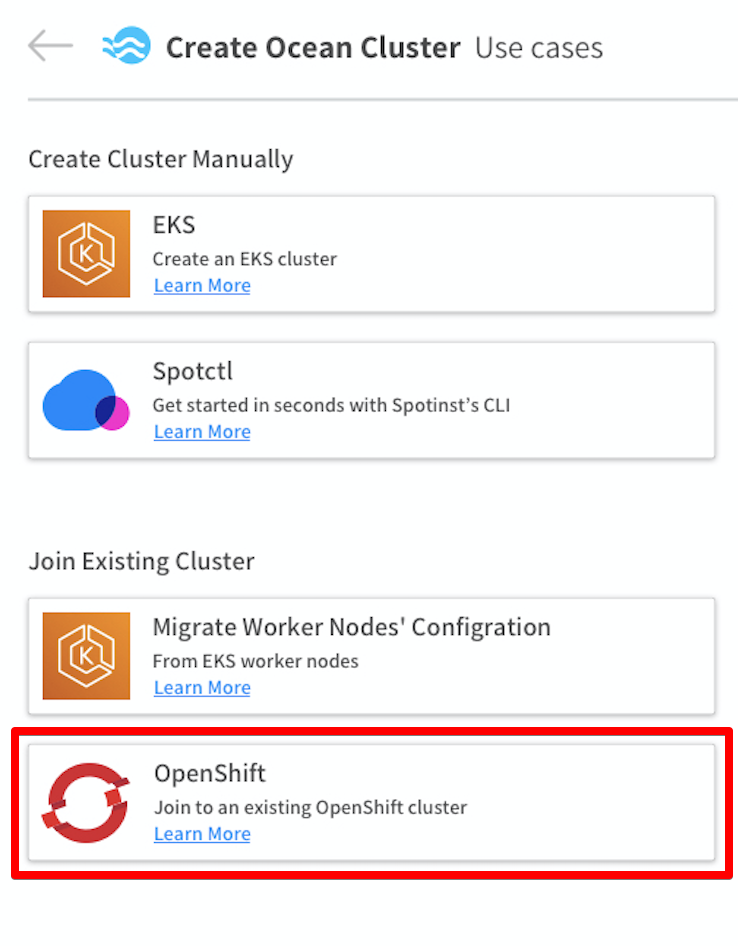 In the side menu of the console, click Ocean/Cloud Clusters.